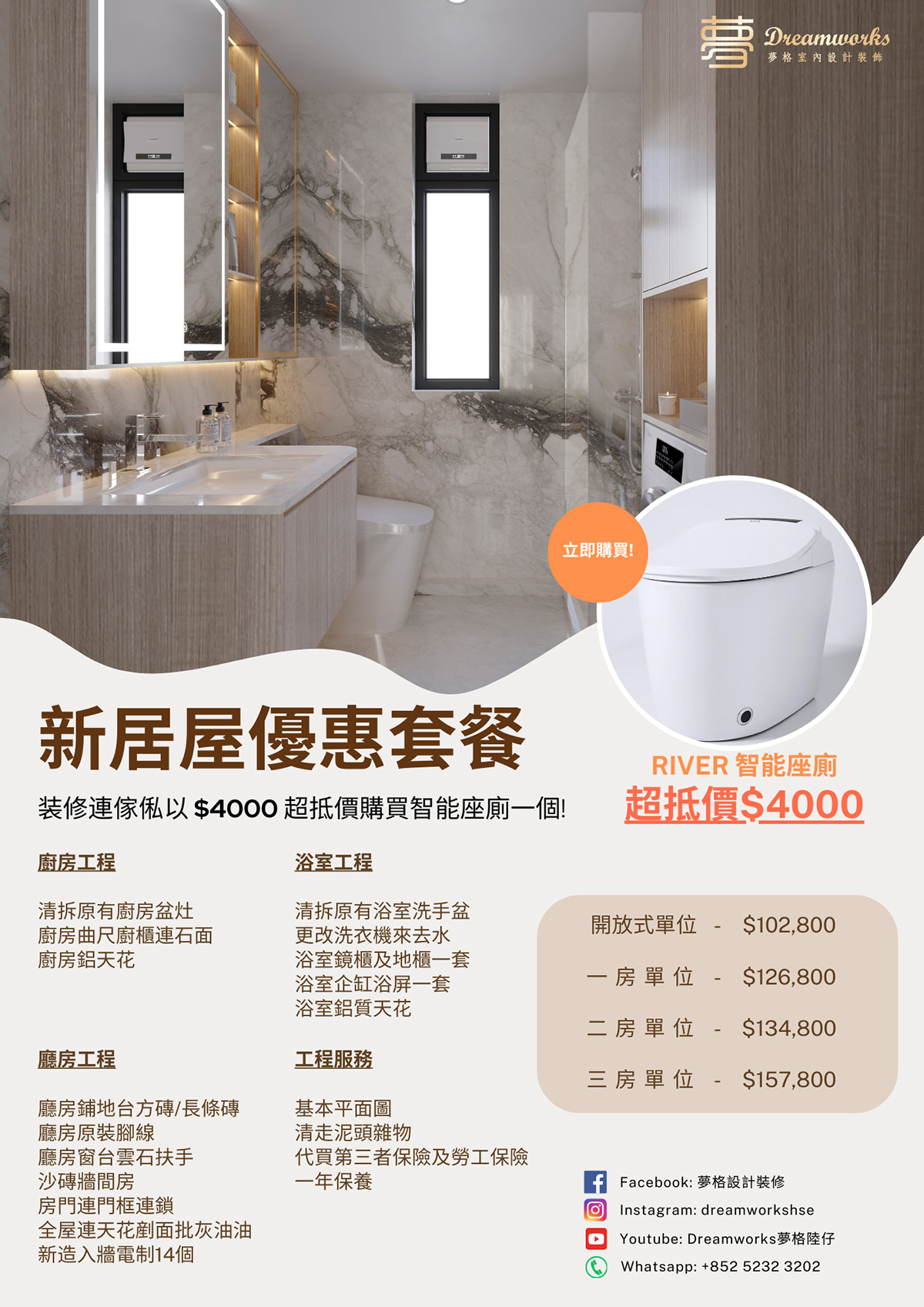 裝修連傢俬即可以優惠價$2000換購智能座廁一個!